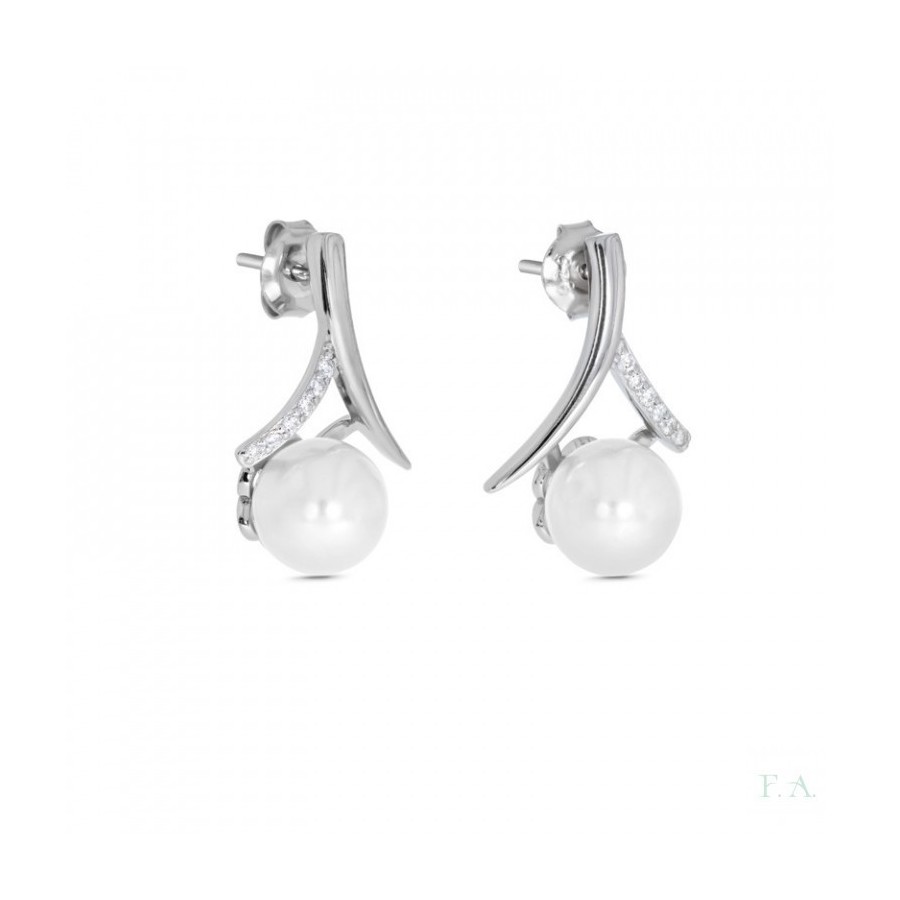 Brincos com Zircónias e Pérolas Prata
