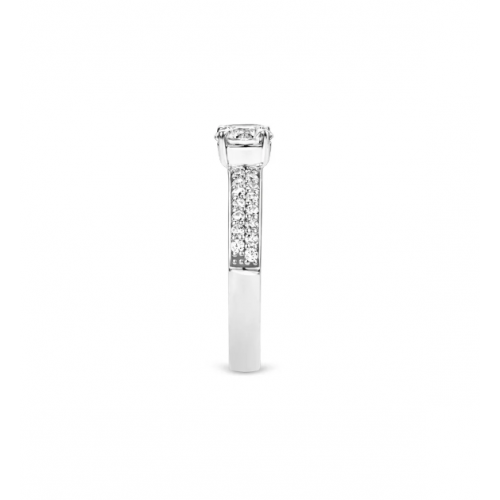 Este elegante anel TI SENTO - Milano consiste em um anel de prata de ródio coberto com duas fileiras de zircônias cúbicas. O cristal grande, de corte redondo, é brilhantemente cortado em um cenário de chaton clássico. O interior é lindamente acabado para oferecer alto conforto. É uma boa ideia combinar o anel com diferentes joias da coleção TI SENTO.