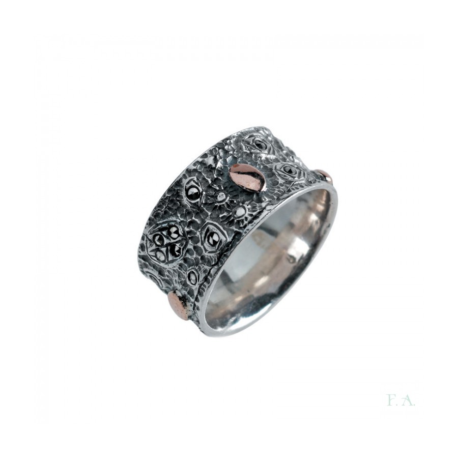 ANEL PRATA E OURO 9K C/ MARCACITES