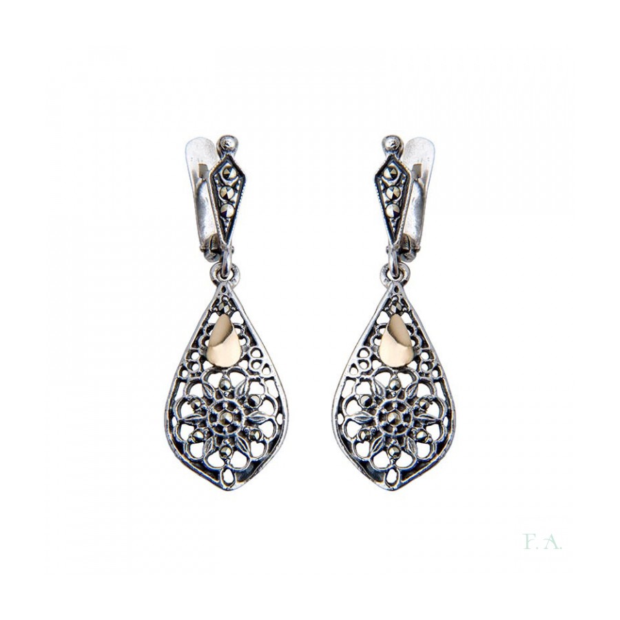 BRINCOS PRATA E OURO 9K C/ MARCACITES