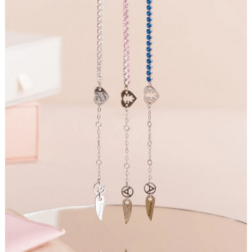 Pulseira Lost In You de aço hipoalergénico. Esta peça tem o elemento característico Anjewels, as asas com fecho ajustável. Esta pulseira é para todas as mulheres que se amam e acreditam que o amor é o melhor caminho para o sucesso.