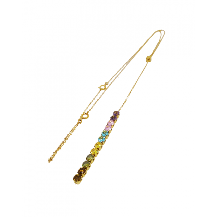 Colar Lost in You de aço hipoalergénico e cristais multicolores. Tem um design particular com pedras multicolor. Esta peça simboliza juntamente com todas as cores, a esperança e garra de viver que cada mulheres carrega no coração.