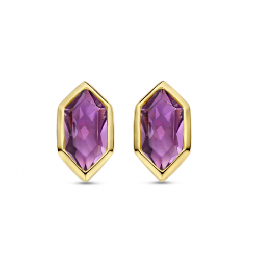 Estes brincos 7944PU banhados a ouro TI SENTO exibem pedras roxas de ametista radiantes complementadas pela opulência de configurações banhadas a ouro amarelo. A intensa tonalidade roxa exala uma sensação de elegância e mística. As pedras roxas são fixadas com segurança dentro de molduras geométricas banhadas a ouro, realçando seu fascínio e adicionando um toque de opulência. Os brincos de pino são inteiramente trabalhados em prata de lei premium 925 e banhados com ouro amarelo para um toque opulento e quente. Seu fechamento traseiro borboleta garante um ajuste confortável e seguro, proporcionando tranquilidade enquanto você usa esses pinos durante todo o dia e à noite. Todos os nossos brincos são nickel-free e hipoalergênicos.