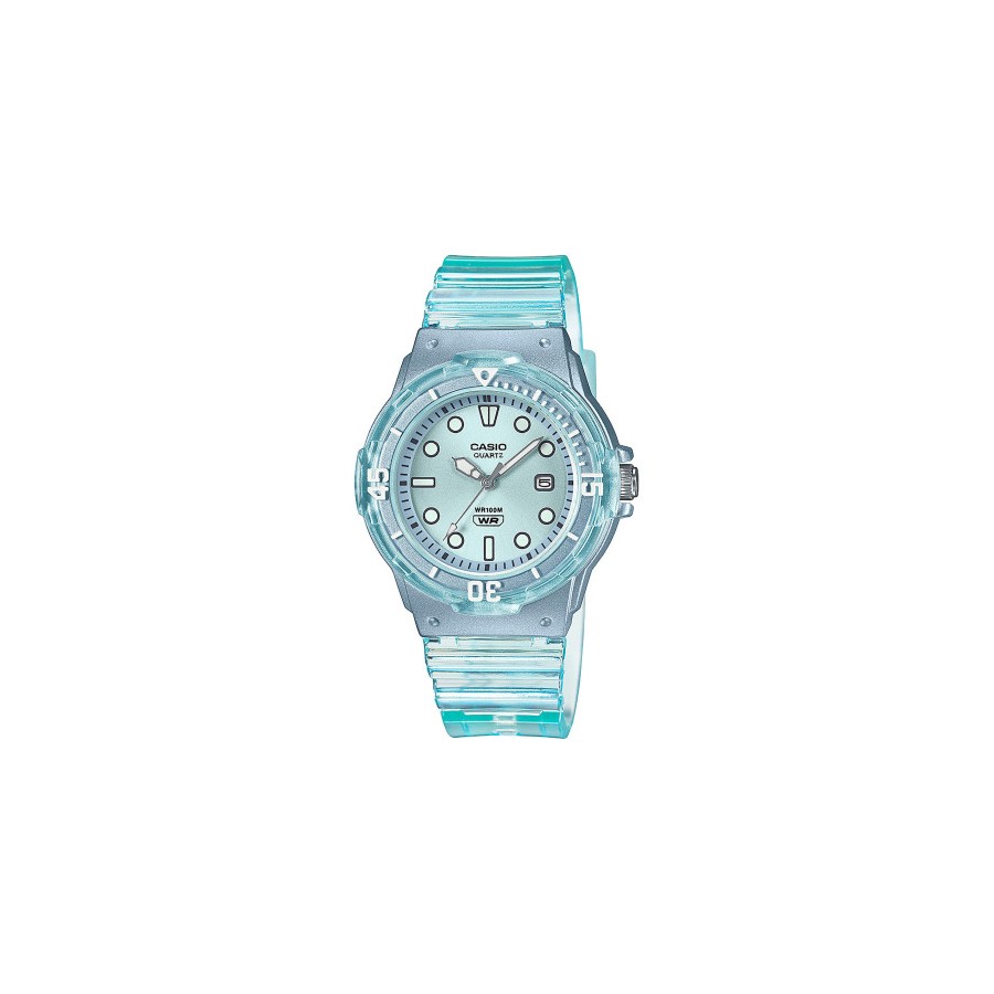 Mergulhe na luminosidade e no brilho de um relógio analógico compacto com um aro e bracelete translúcidos.