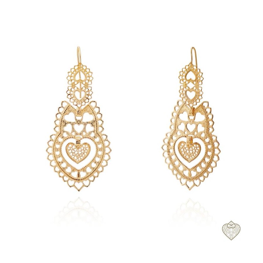 Brincos Saudade Rainha Coração Nº1 PRATA DOURADA