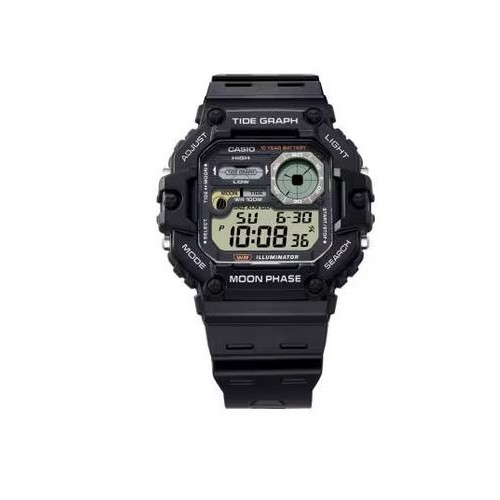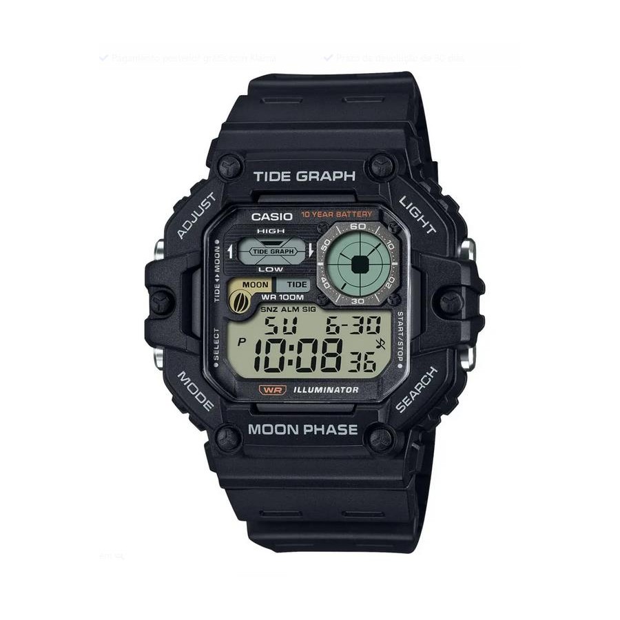Atenção aos amantes do mar! Relógios digitais com caixa de grandes dimensões e funções práticas que todos os amantes de desportos náuticos irão adorar. O design resistente com um formato de caixa robusto e um mostrador de várias janelas remete para o visual das engrenagens mecânicas. Com um LCD inspirado num estilo de engenhoca moderna, estes relógios fornecem as informações de que necessita numa leitura fácil e nitidamente visível. Oferecendo simultaneamente utilidade e estilo, o gráfico de marés, as informações lunares, os 10 anos de vida útil da pilha e a resistência à água de até 10 bar proporcionam aquilo de que necessita nos seus dias mais ativos.