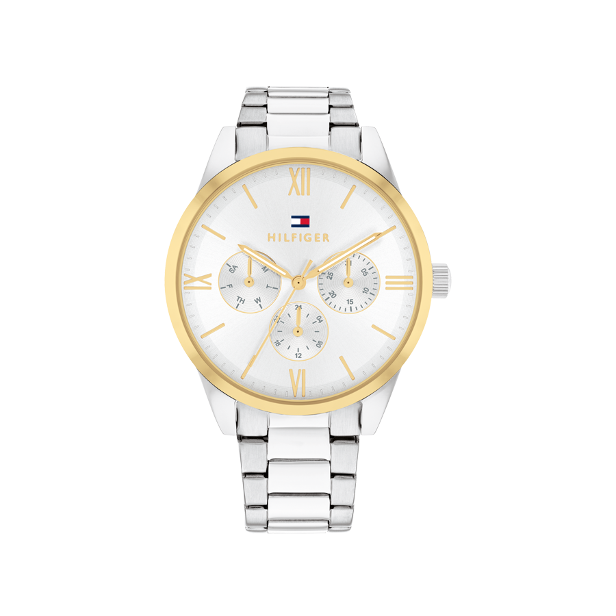 Apresentamos o sinónimo de elementos essenciais sofisticados: o relógio Tommy Hilfiger para mulher - uma fusão de encanto feminino, sofisticação cuidada e elegância intemporal. Apresenta um mostrador sunray. A funcionalidade alia-se à moda com o seu mostrador multifunções, com submostradores dos dias da semana, das 24 horas e da data. Eleve o seu estilo e faça uma afirmação que transcende as tendências, abraçando a beleza da elegância intemporal em cada olhar para o seu pulso