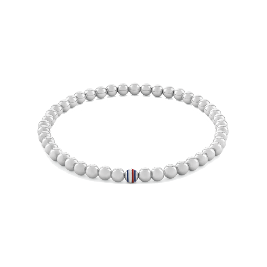 Pulseira com contas para mulher, adornada com um sofisticado acabamento em prateado e as icónicas riscas Tommy Hilfiger no centro. Criada para a mulher moderna que valoriza tanto a sofisticação como o estilo, esta pulseira emana glamour. O diâmetro desta pulseira ajustável, com 165 mm, e o fecho elástico, garantem um ajuste confortável, enquanto as contas e o detalhe do logótipo icónico dão um toque único.