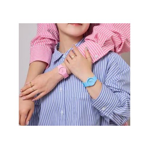 Um relógio analógico com o visual clássico de ponteiros de horas, minutos e segundos num tamanho mais pequeno e fácil de usar. Os ponteiros das horas e dos minutos são coloridos para combinar com os marcadores correspondentes, pelo que é fácil ver as horas. É a opção ideal para um primeiro relógio. A bracelete é fabricada com resina biológica, um material que se espera contribuir para reduzir o impacto ambiental.