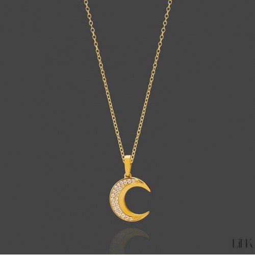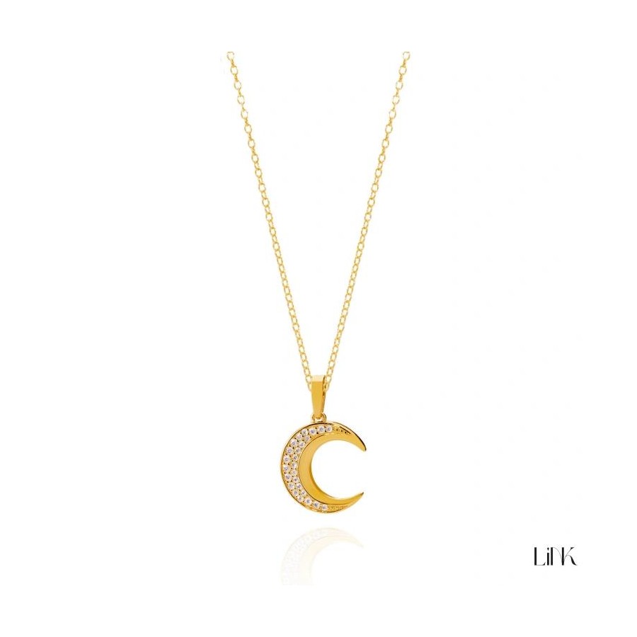 Colar Link Lua Com Zircónias Prata dourada