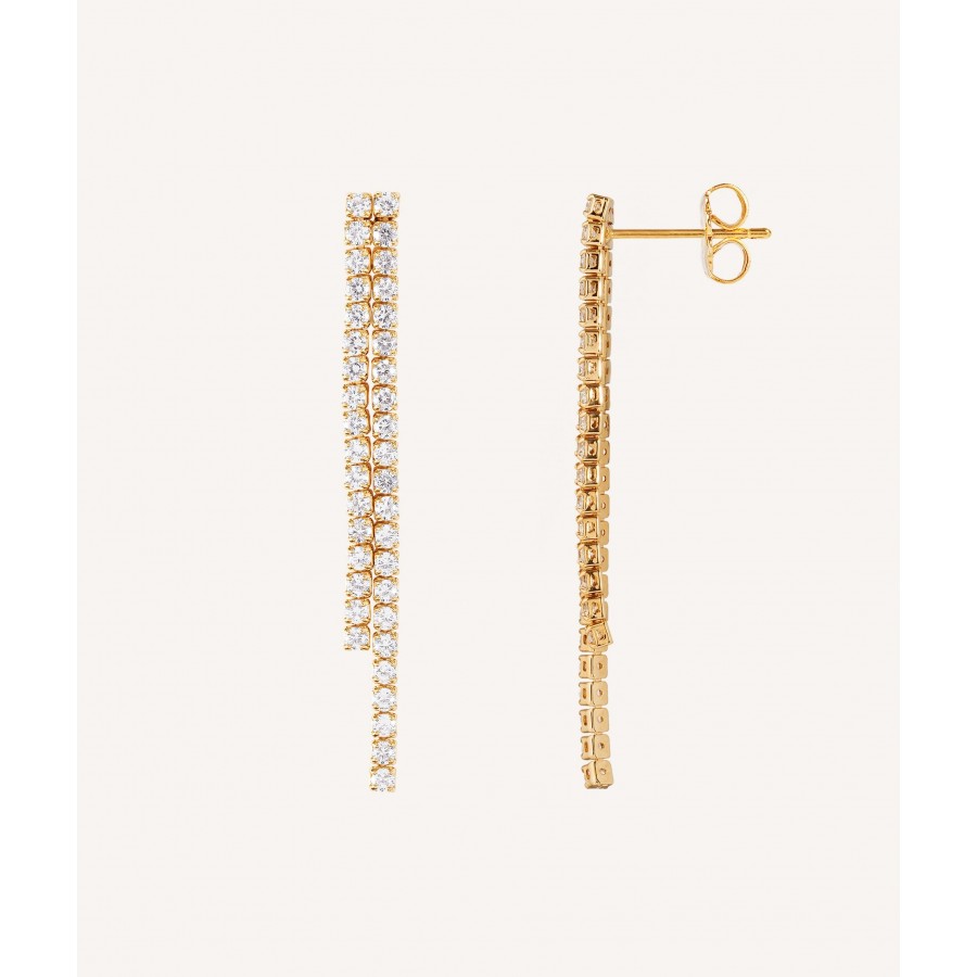 Brincos Bonnie 18 kt banhado a ouro dupla tira com zirconias