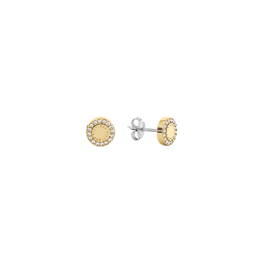 Brincos Tommy Hilfiger para mulher, adornados com minicírculos embelezados com cristais brilhantes, cada centro exibindo o icónico logótipo Tommy Hilfiger. Criada para a mulher moderna que abraça o estilo, esta pulseira capta a essência da elegância contemporânea.