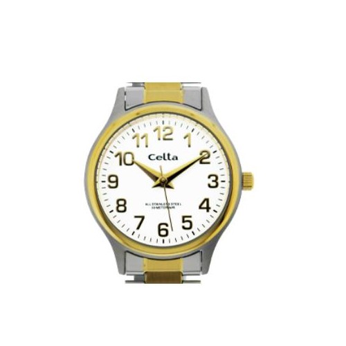 Relógio Celta analógico, com caixa e bracelete em aço bicolor, para senhora.