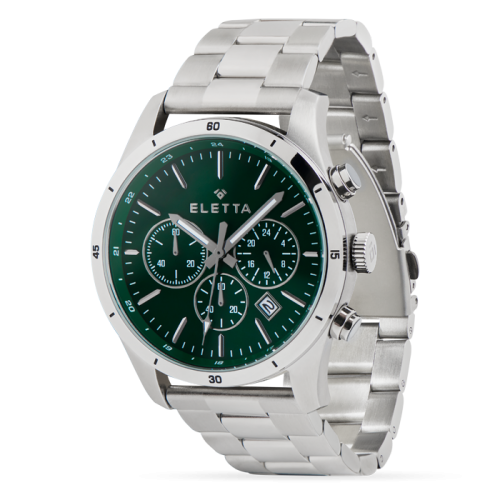 Active é a nova linha masculina da Eletta, concebida para o homem moderno e dinâmico. Este relógio com um estilo inspirado nos relógios de mergulhador, apresenta caixas de 42mm em aço escovado, biséis em aço brilhante e mostrador verde multifunções com calendário. A bracelete em aço garante robustez, enquanto a bracelete extra em pele permite versatilidade para qualquer ocasião. Active é a solução contemporânea para quem valoriza funcionalidade e estilo.