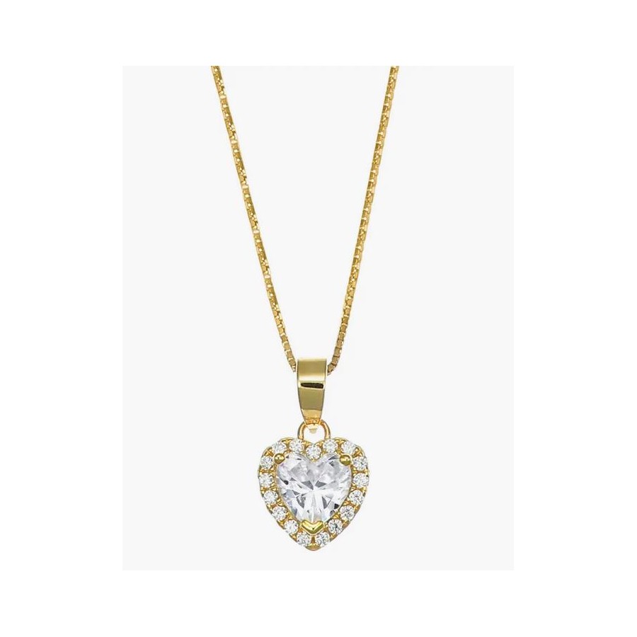 Colar de charme em prata esterlina banhado a ouro amarelo com zircônia branca cortada no coração. Comprimento ajustável de 40 a 42,5 e 45 cm, fecho de lagosta.