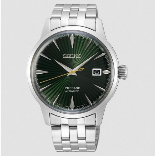 Relógio de homem da Seiko Pressage com caixa e bracelete em aço inoxidável de coloração prateada. Com um toque moderno de elevada qualidade relojoeira japonesa, este modelo automático de calibre 4R35 é composto por 23 rubis e uma reserva de autonomia de 41 horas. Com o aperfeiçoamento do sentido estético e perícia artesanal japonesa, este acessório oferece uma coloração vibrante que combina o prateado com o mostrador verde, elevando o look de um homem a um patamar superior de elegância e sofisticação.