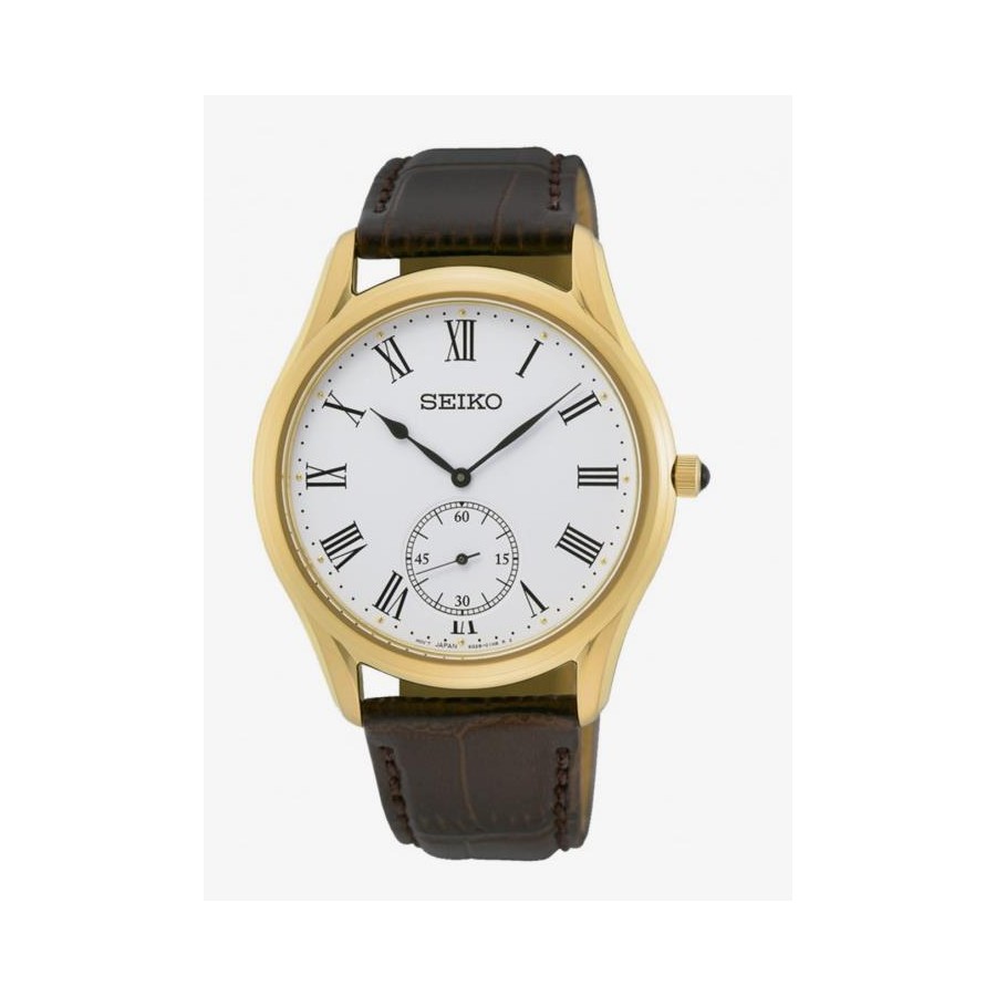 Para homens que apreciam o requinte do tradicional, este relógio Seiko combina design clássico com a excelência japonesa em relojoaria. Com caixa dourada em aço inoxidável, mostrador branco e algarismos romanos, este modelo exala sofisticação e sobriedade.