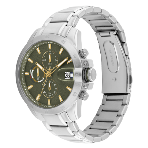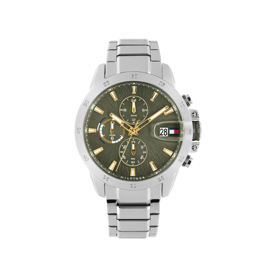 Dinâmico e aventureiro, o relógio Tommy Hilfiger para homem, com um uma caixa em aço, mostrador com três sub-mostradores, e uma lupa que realça a janela da data e a bandeira icónica da marca complementado por uma bracelete em pele, é o acessório perfeito para todas as ocasiões.