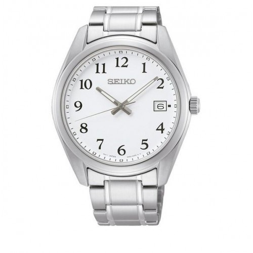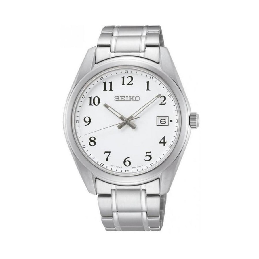 Elegância e precisão definem este modelo Seiko de pulso masculino. Com caixa e bracelete em aço inoxidável, apresenta um design intemporal com mostrador branco de leitura clara, numerais árabes pretos e ponteiros prateados. A janela de data posicionada às 3h acrescenta funcionalidade ao estilo. Um relógio ideal para quem valoriza pontualidade com distinção e sofisticação.