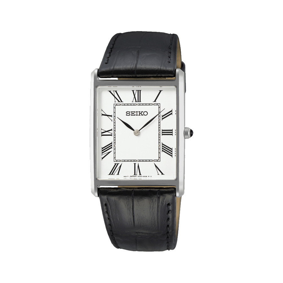 Elegância que resiste ao tempo. O design minimalista e refinado deste Seiko com o mostrador retangular e números em romano é a definição de sofisticação discreta. Ideal para valoriza o estilo intemporal!