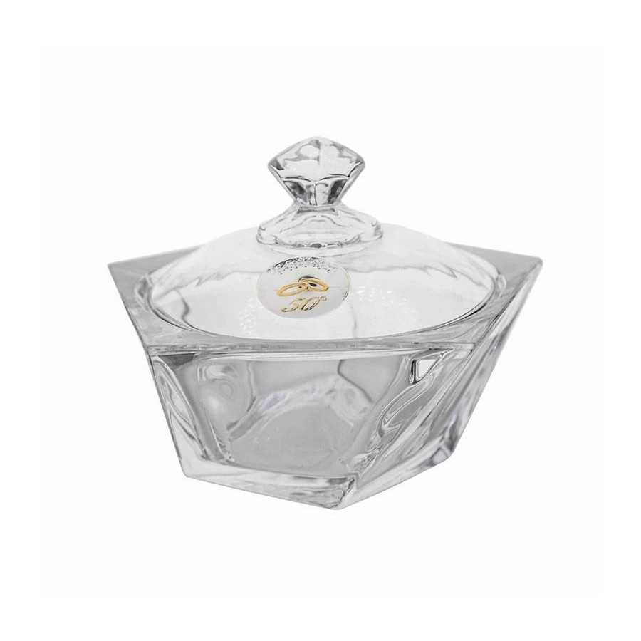 BOMBONEIRA VIDRO 50 ANOS PVD/PRATEADO