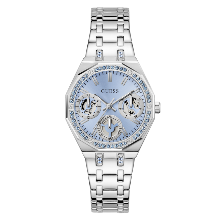 O Guess GW1009L1 combina um estilo clássico com toques modernos, tornando-o adequado para diversas ocasiões, desde o uso diário até eventos especiais. O tom azul claro do mostrador adiciona um elemento de frescor e sofisticação, enquanto os cristais decorativos oferecem um brilho sutil, sem exageros