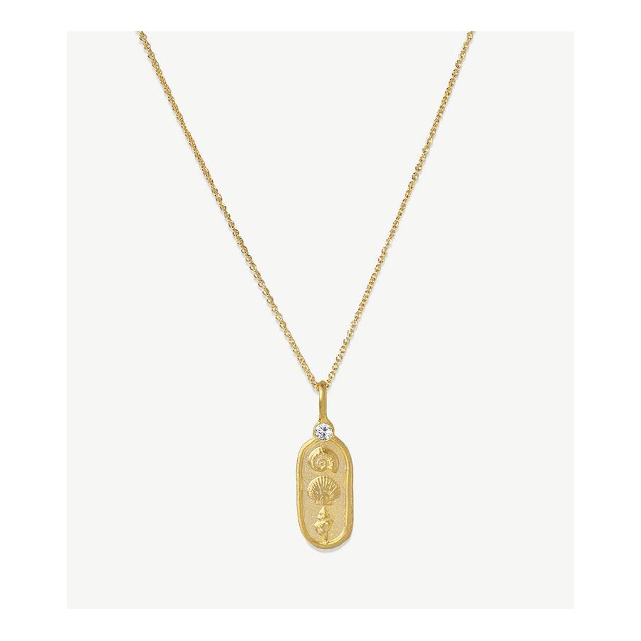 Colar com relevos marítimos oval, em prata 925 com baho de ouro 18k ou ródio e zircónia.