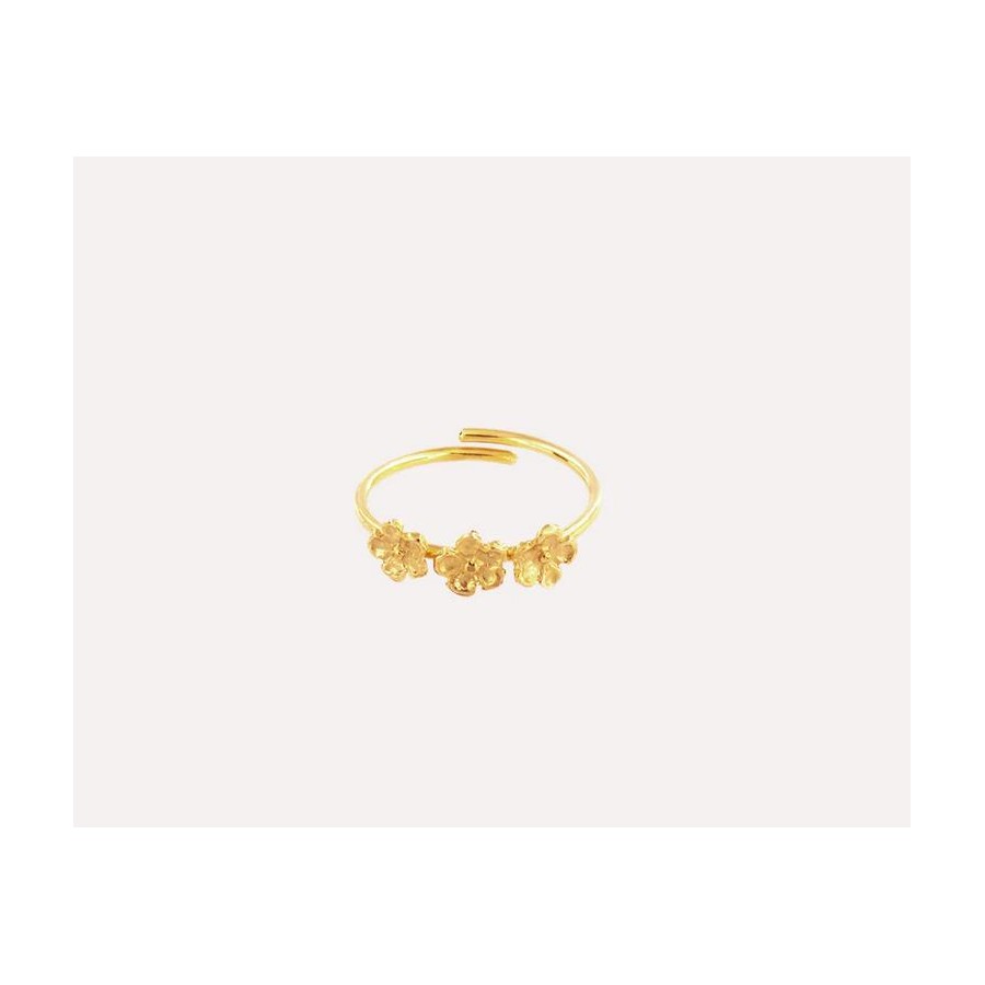 Anel ajustável com três flores em prata e banho de ouro