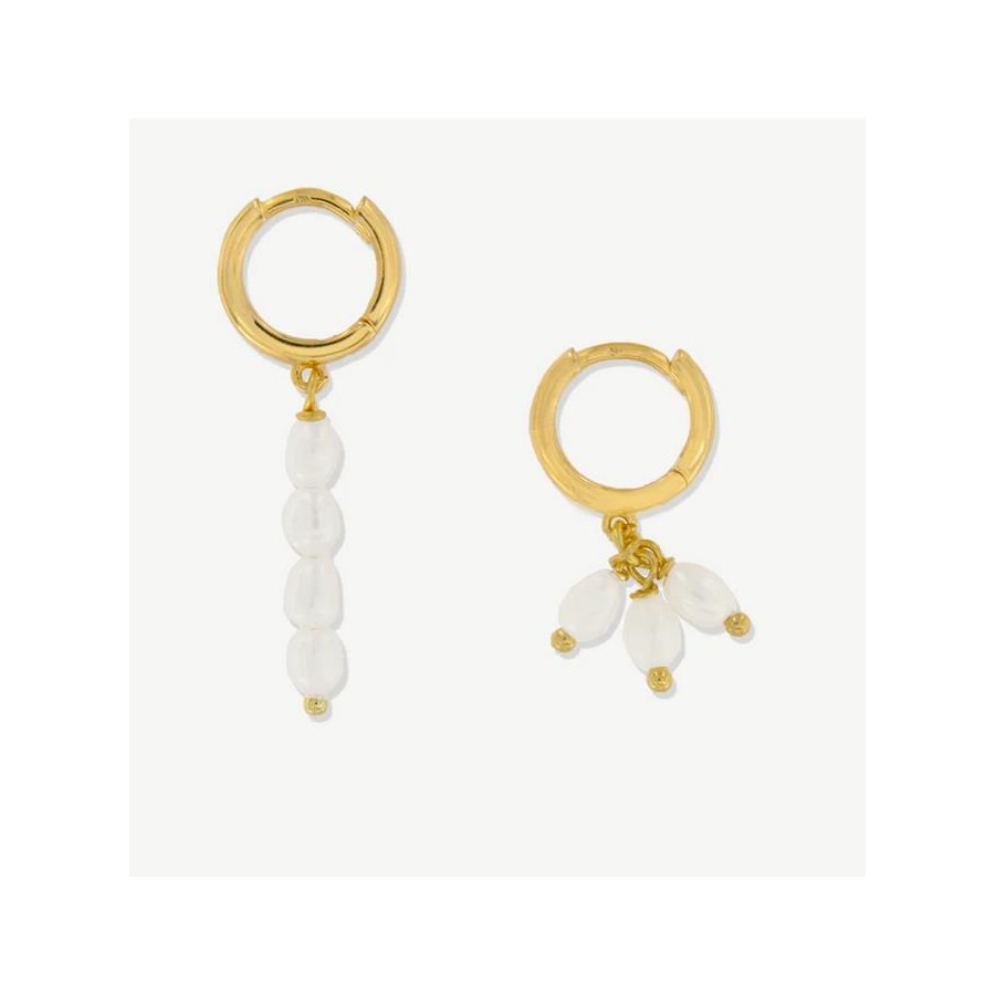Argolas em prata com banho de ouro e pendentes assimétricos de pérolas