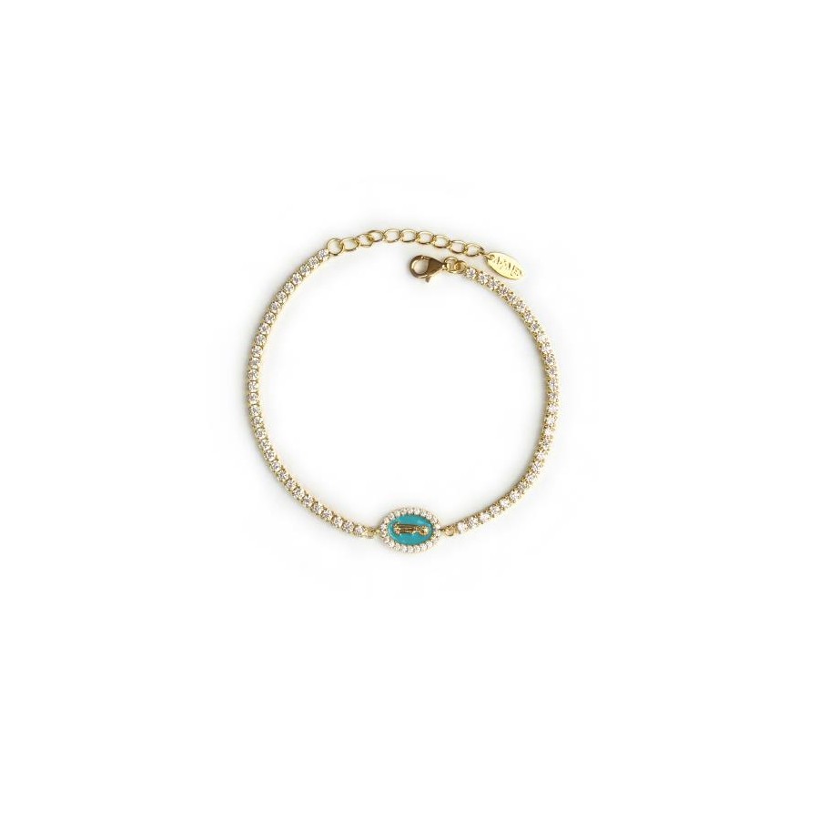 Pulseira Riviera com milagrosa com esmalte Prata Dourada Amen Jewelry
