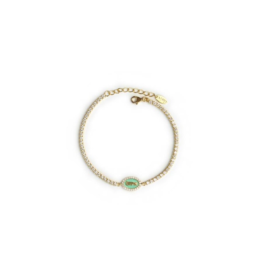 Pulseira Riviera com milagrosa com esmalte Prata Dourada Amen Jewelry