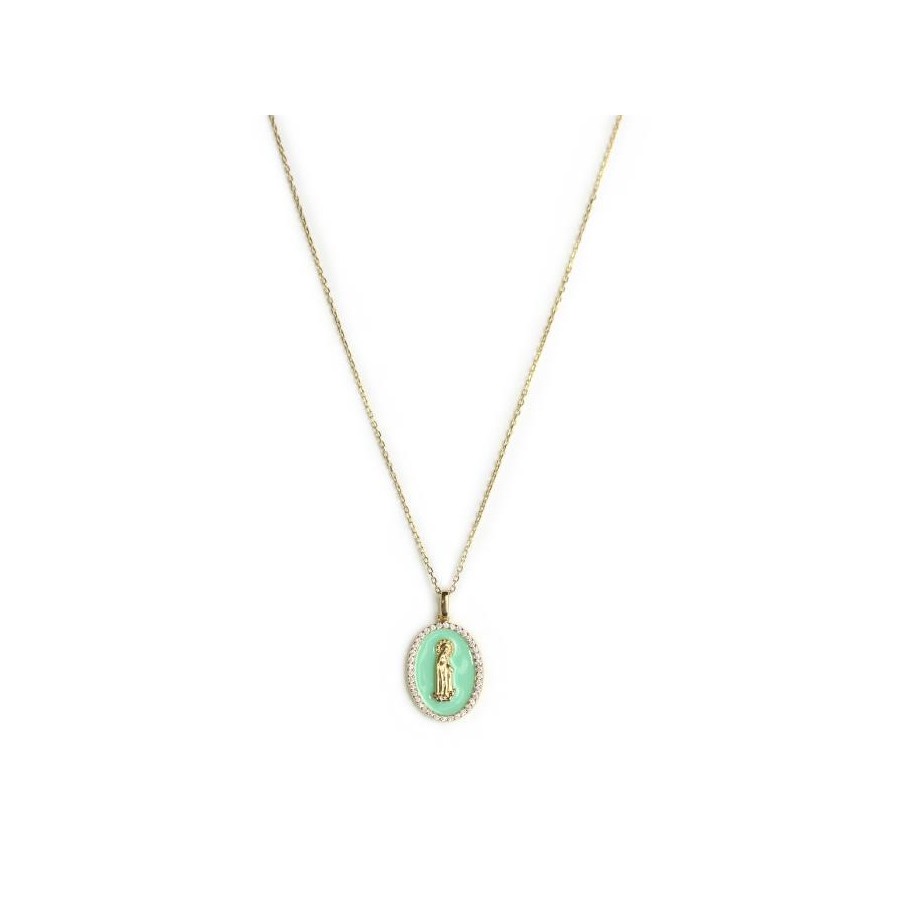 Colar Milagrosa com esmalte Prata Dourada Amen Jewelry