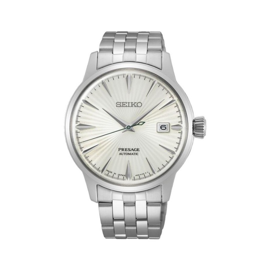 Relógio de homem da Seiko Pressage com caixa e bracelete em aço inoxidável de coloração prateada. Com um toque moderno de elevada qualidade relojoeira japonesa, este modelo automático de calibre 4R35 é composto por 23 rubis e uma reserva de autonomia de 41 horas. Com o aperfeiçoamento do sentido estético e perícia artesanal japonesa, este acessório oferece uma coloração vibrante que combina o prateado com o mostrador verde, elevando o look de um homem a um patamar superior de elegância e sofisticação.