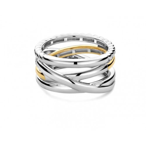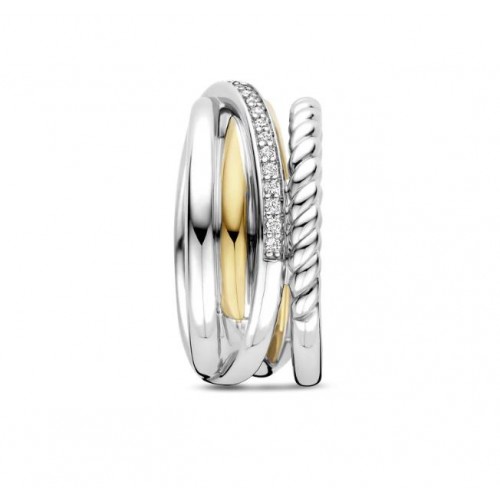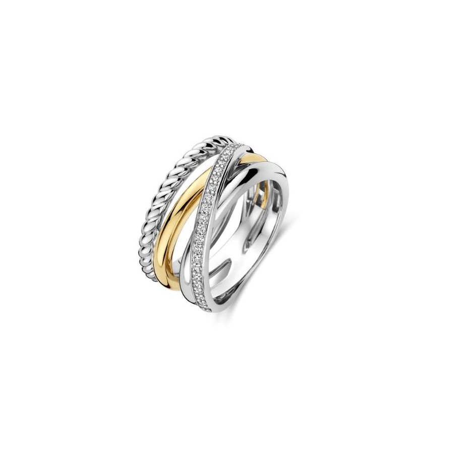 Celebre o design icônico com este Anel de prata banhado a ouro TI SENTO 12384ZY. Uma nova abordagem a uma das nossas silhuetas mais amadas, este anel funde curvas esculturais com contraste refinado. Confeccionada em prata esterlina 925 premium, ela combina banho de ouro amarelo radiante, uma faixa de cabo trançada e uma fita cravejada de pavê - entrelaçando luz, textura e movimento. Ousada, mas sem esforço, ela traz riqueza em camadas tanto para looks casuais quanto para o estilo noturno. Sem níquel e hipoalergênico, é uma declaração de conforto tanto quanto de estilo.