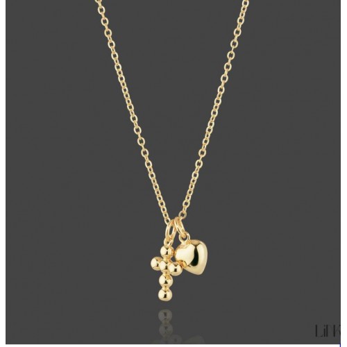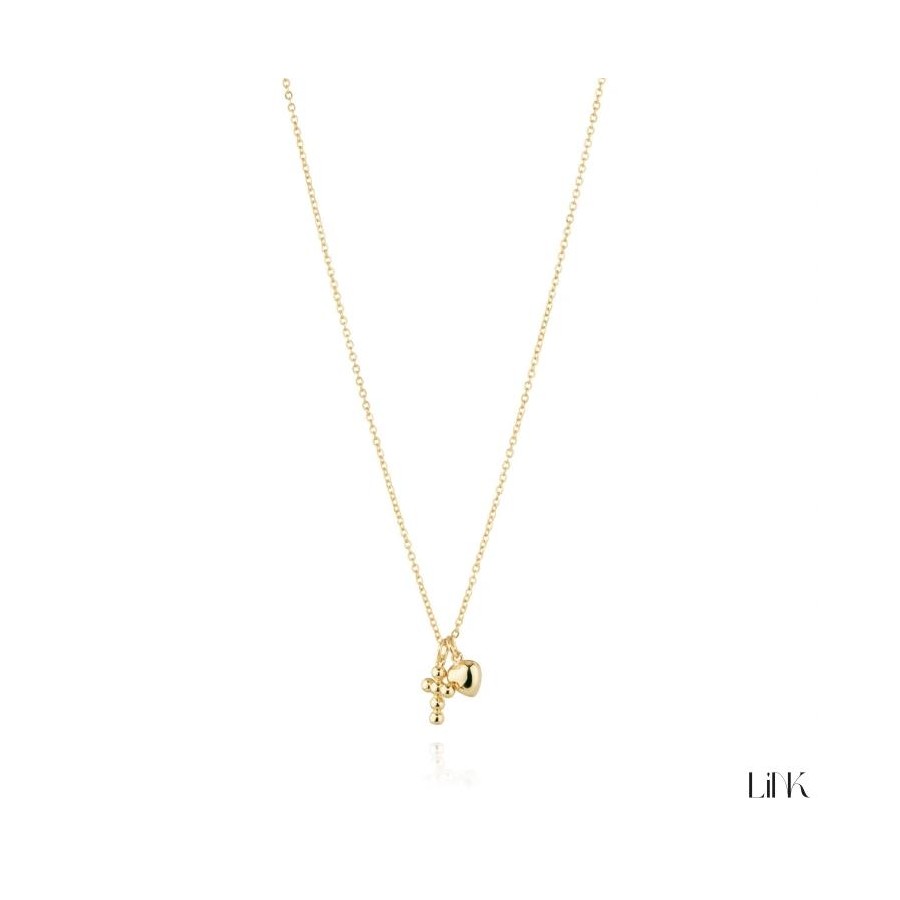 Colar Coração + Cruz Link Prata Dourada