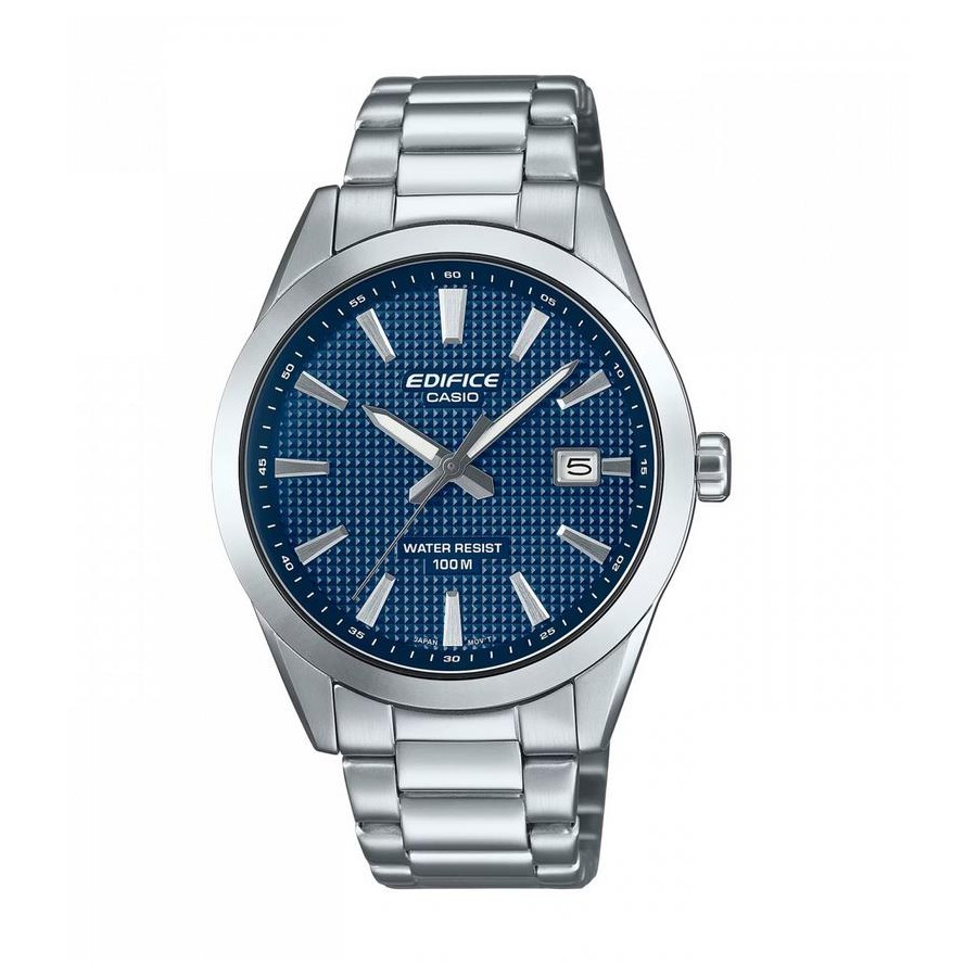 Apresentamos um EDIFICE para os fãs de desportos motorizados e entusiastas de automóveis - um relógio requintado que ostenta o lendário padrão Clous de Paris. O mostrador do EFV-160D apresenta um esquema de três ponteiros com indicação da data, complementado pela sofisticação marcante do padrão de pirâmide em relevo Clous de Paris. Com uma caixa de 40 mm em aço inoxidável e um novo formato de bracelete, este relógio proporciona um ajuste natural para conforto durante todo o dia. O vidro é ligeiramente curvo para uma visibilidade ainda melhor, enquanto a resistência à água de 100 metros permite-lhe concentrar-se em coisas mais excitantes. Funcional e elegante - um EDIFICE que torna a vida muito mais doce.