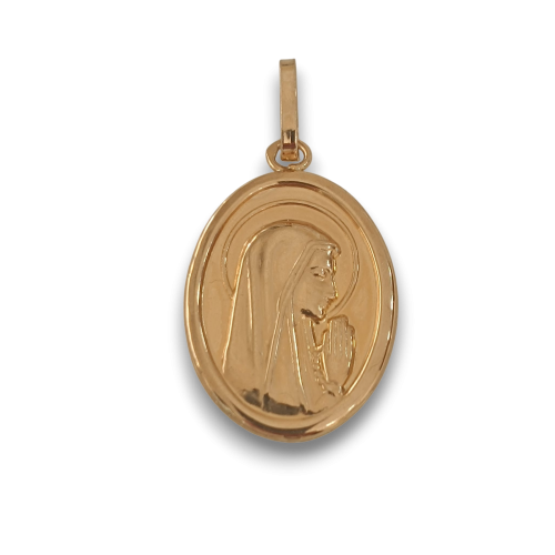 Medalha Nossa Senhora do Rosário de Fátima em Ouro 19KUma joia carregada de fé, significado e elegância. Esta medalha em ouro 19 quilates representa Nossa Senhora do Rosário de Fátima, um dos maiores símbolos de proteção e devoção.Na frente, a imagem de Nossa Senhora com os três pastorinhos e a inscrição N. S. do Rosário de Fátima surge em relevo delicado e cheio de detalhe. No verso, o perfil de Nossa Senhora em oração transmite serenidade e espiritualidade, tornando esta peça ainda mais especial.Com acabamento polido e brilho intenso, o ouro 19K confere-lhe durabilidade, valor e uma beleza intemporal perfeita para usar todos os dias ou para oferecer num momento marcante.? Um presente ideal para batizado, comunhão, crisma ou simplesmente para quem deseja levar consigo um símbolo de fé e proteção.Uma joia que une tradição, devoção e sofisticação num só detalhe.