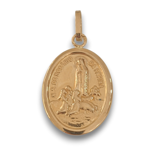 Medalha Nª Srª de Fátima com duas faces OURO 19K