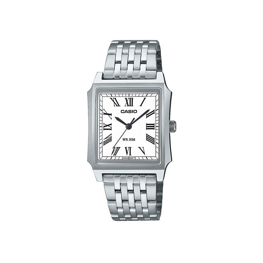 Este elegante relógio Casio combina um design clássico com a confiabilidade que a marca japonesa oferece há décadas. Com caixa quadrada em aço inoxidável e mostrador branco com numerais romanos, é um acessório sofisticado que se adapta perfeitamente a looks formais ou casuais.
