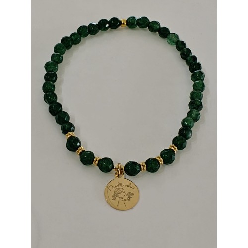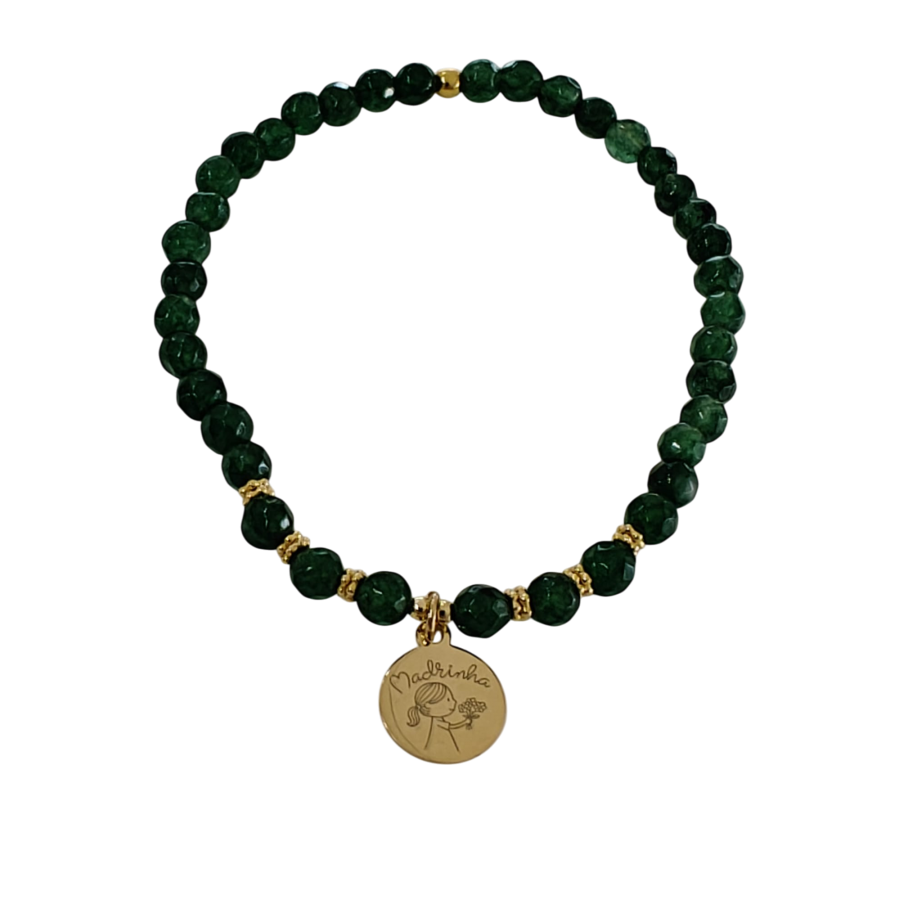 Encante a sua madrinha com esta linda pulseira feita em prata dourada e adornada com pedras naturais de ágata. Disponível em 5 opções,: uma sofisticada variação de tons vibrantes e cheias de energia.
