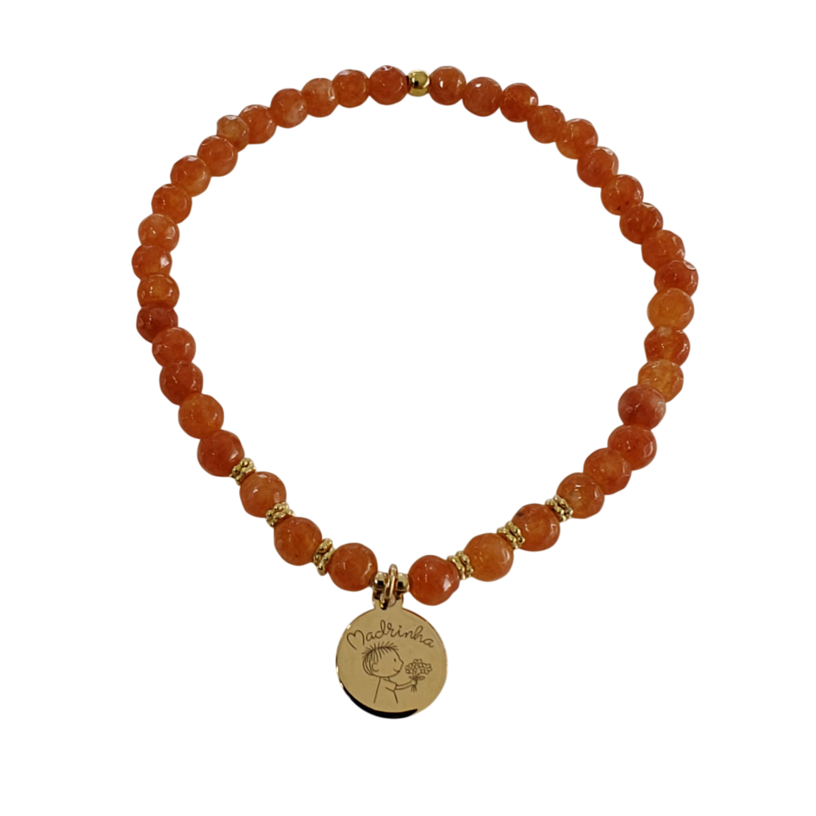 Encante a sua madrinha com esta linda pulseira feita em prata dourada e adornada com pedras naturais de ágata. Disponível em 5 opções,: uma sofisticada variação de tons vibrantes e cheias de energia.