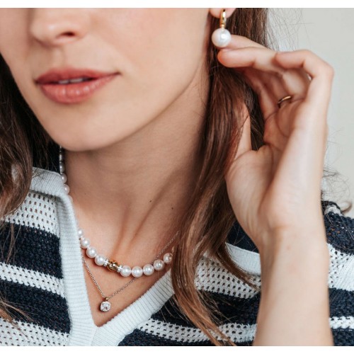 Celebre a beleza atemporal com este colar de pérolas banhadas a ouro TI SENTO 34112YP. Um fio de pérolas brancas radiantes é elegantemente pontuada por uma esfera de ouro amarelo polido, ladeada por acentos de zircônia cúbica com conjunto de pavê que brilham delicadamente a cada movimento. O equilíbrio harmonioso de luz, forma e textura eleva o colar de pérolas clássico em uma declaração contemporânea refinada. Trabalhada a partir de prata esterlina premium 925 e enriquecida com revestimento de ouro, esta peça mistura a suavidade das pérolas com a opulência de acentos dourados. Seu ponto focal central chama a atenção e adiciona uma assinatura moderna a esta silhueta de herança. Use-o com uma blusa de seda ou vestido de noite para um visual que sussurre elegância, ou coloque-o em camadas com correntes delicadas para uma nova visão sobre o estilo de pérolas. Sem níquel e hipoalergênico, este colar garante conforto duradouro ao lado de estilo duradouro.